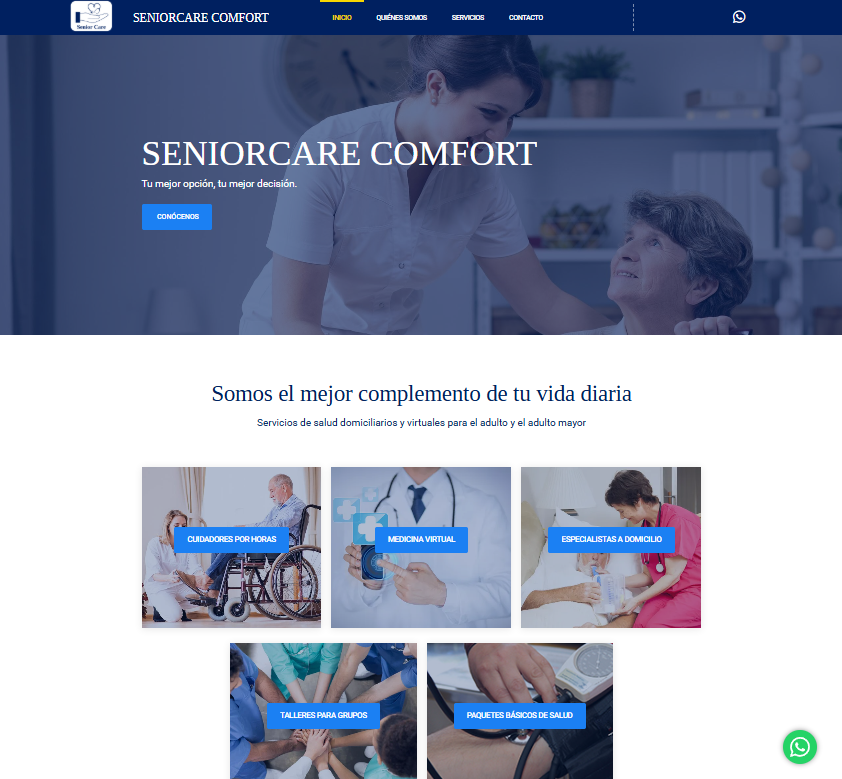 Sitio web para un servicio especializado en el cuidado de adultos mayores, con una interfaz accesible, enfocada en la confianza y el bienestar.