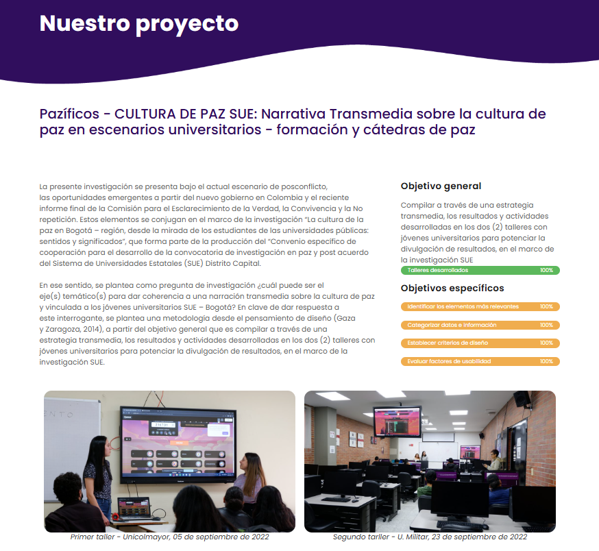 Diseño web para un proyecto que promueve la cultura de paz en espacios universitarios, fomentando el diálogo y la transformación social.