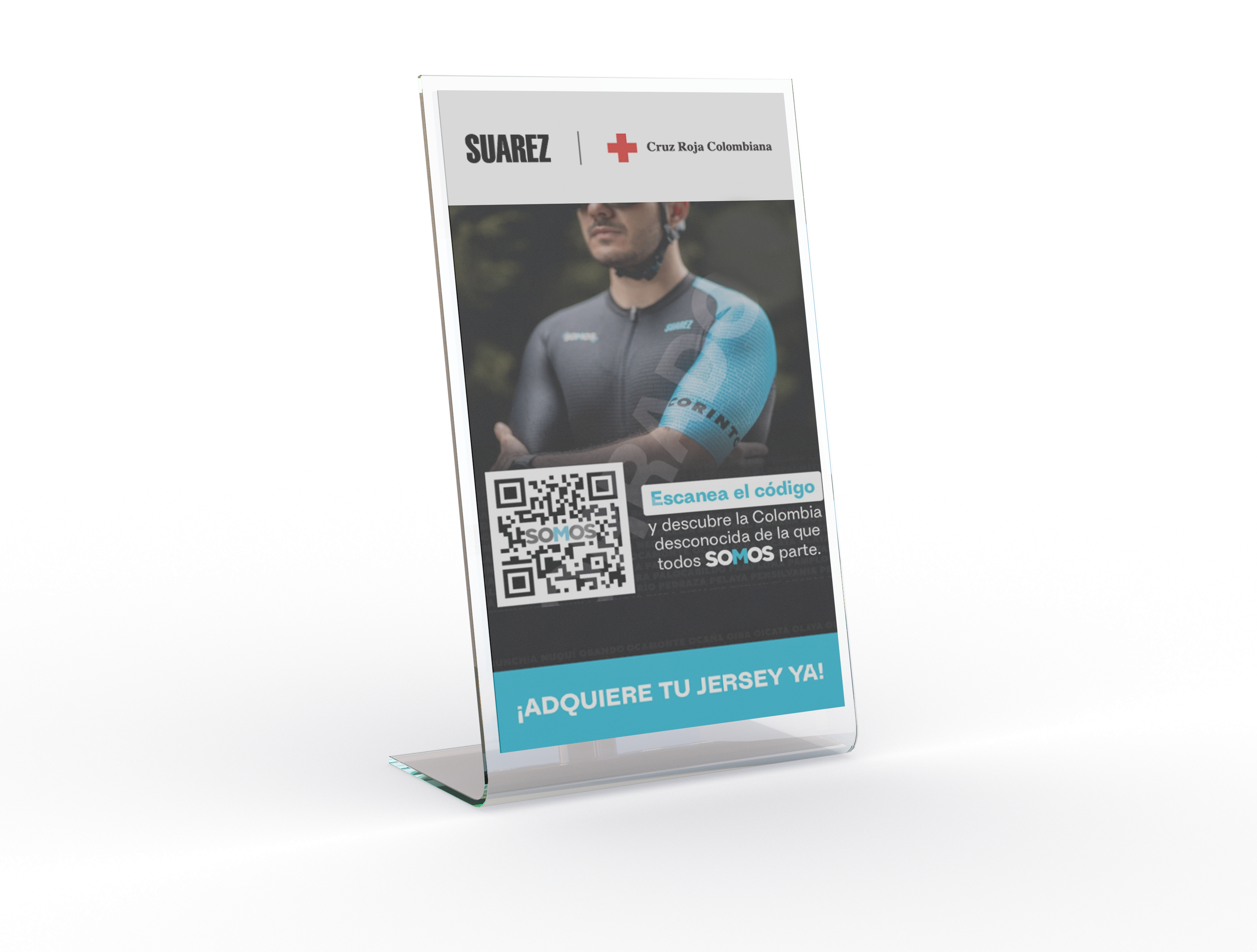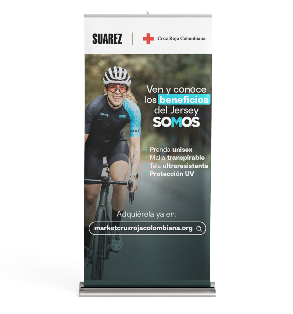 Para la promoción de la campaña, diseñé una serie de piezas de expectativa para redes sociales, con el fin de generar interés y atraer a personas afines al ciclismo y al deporte. Estas piezas sirvieron como invitación al evento de lanzamiento, que incluyó la producción de material POP, pendones, habladores y backings. Luego del lanzamiento, se desarrolló una batería de piezas y videos promocionales, destacando los beneficios del jersey y el propósito de la campaña. Todo el material fue diseñado con un enfoque publicitario, pensado para redes sociales y difusión en medios de comunicación como televisión y prensa, logrando amplificar el impacto del mensaje y aumentar las ventas para reunir fondos destinados a la labor humanitaria de la Cruz Roja Colombiana.